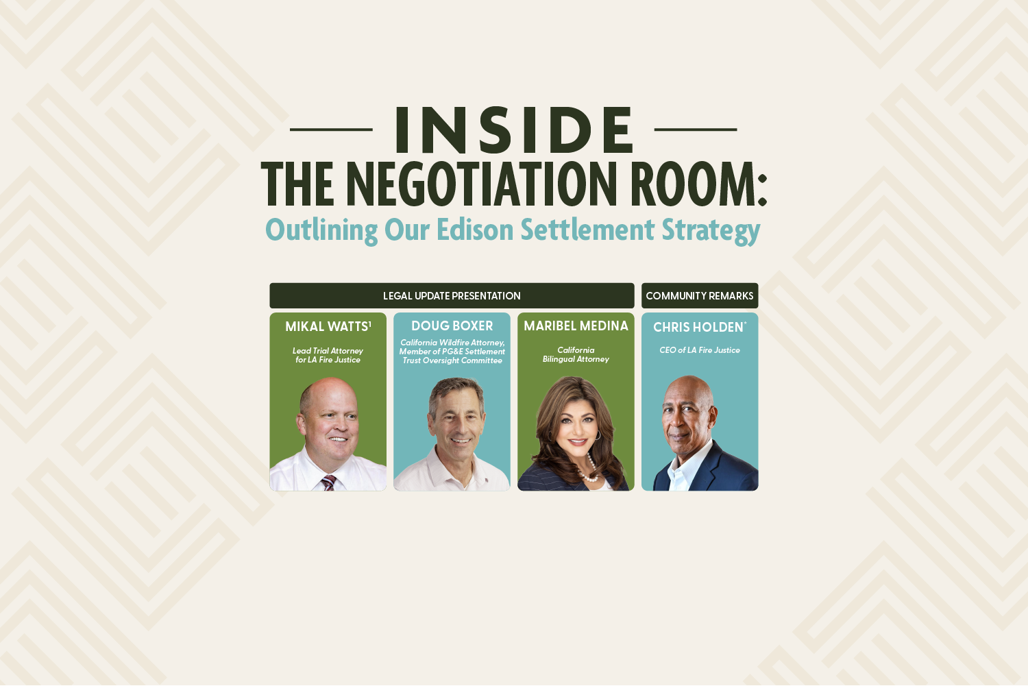 Hear directly from lead trial attorney Mikal Watts1 about where the lawsuit against Edison stands, what comes next, and what you should be doing now to protect and strengthen your claim.