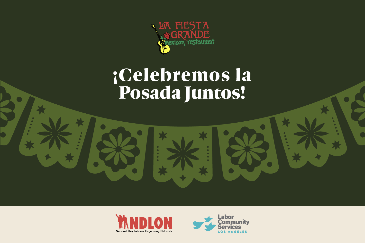 La Familia Delgado de La Fiesta Grande Restaurant, Labor Community Services, y LA Fire Justice te invitan a una Posada especial para compartir calor, comunidad y amor con las familias afectadas por el Incendio Eaton.
