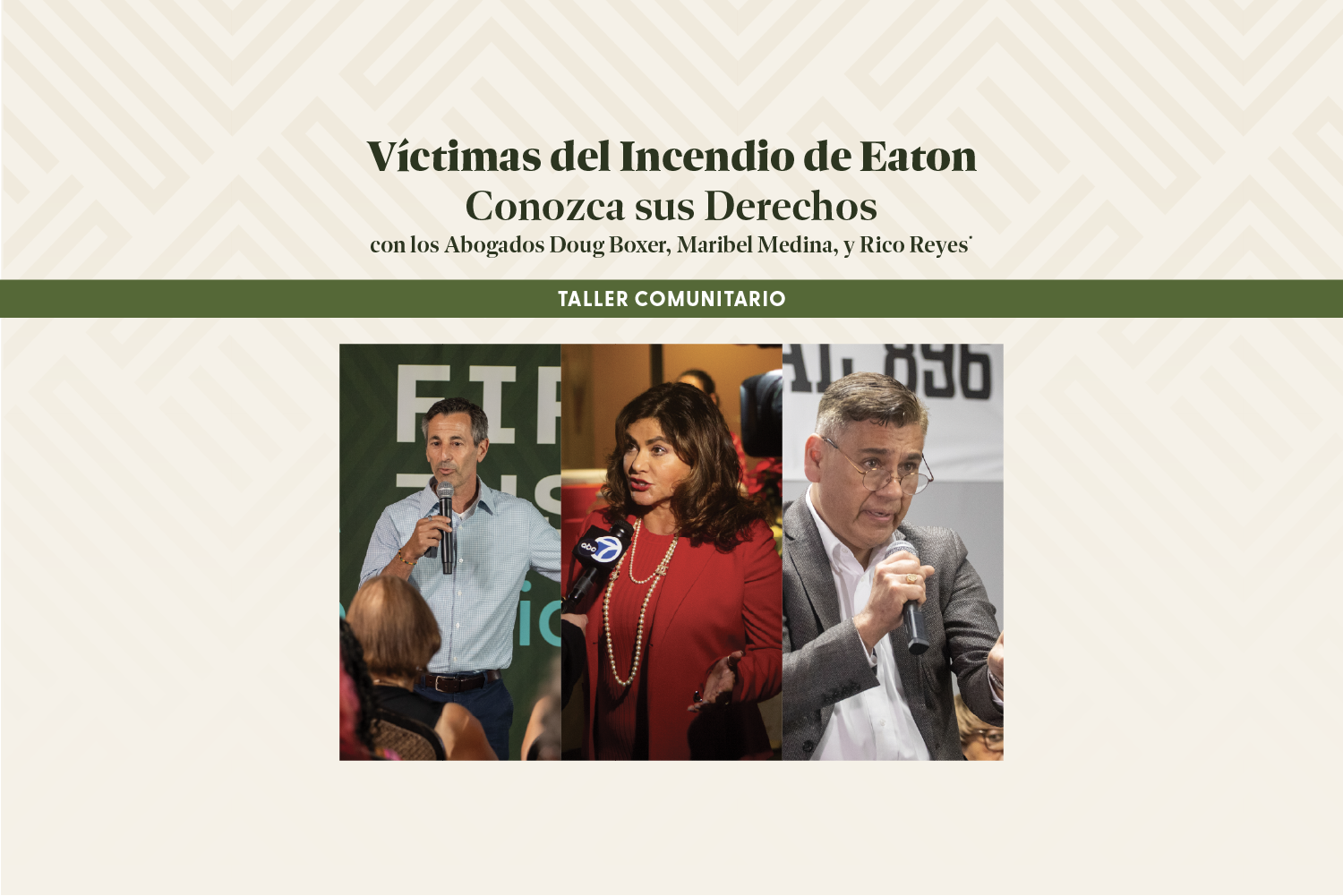 Únase a LAFJ y a los abogados Doug Boxer, Maribel Medinas y Rico Reyes* en una reunión informativa gratuita para las víctimas del incendio de Eaton.