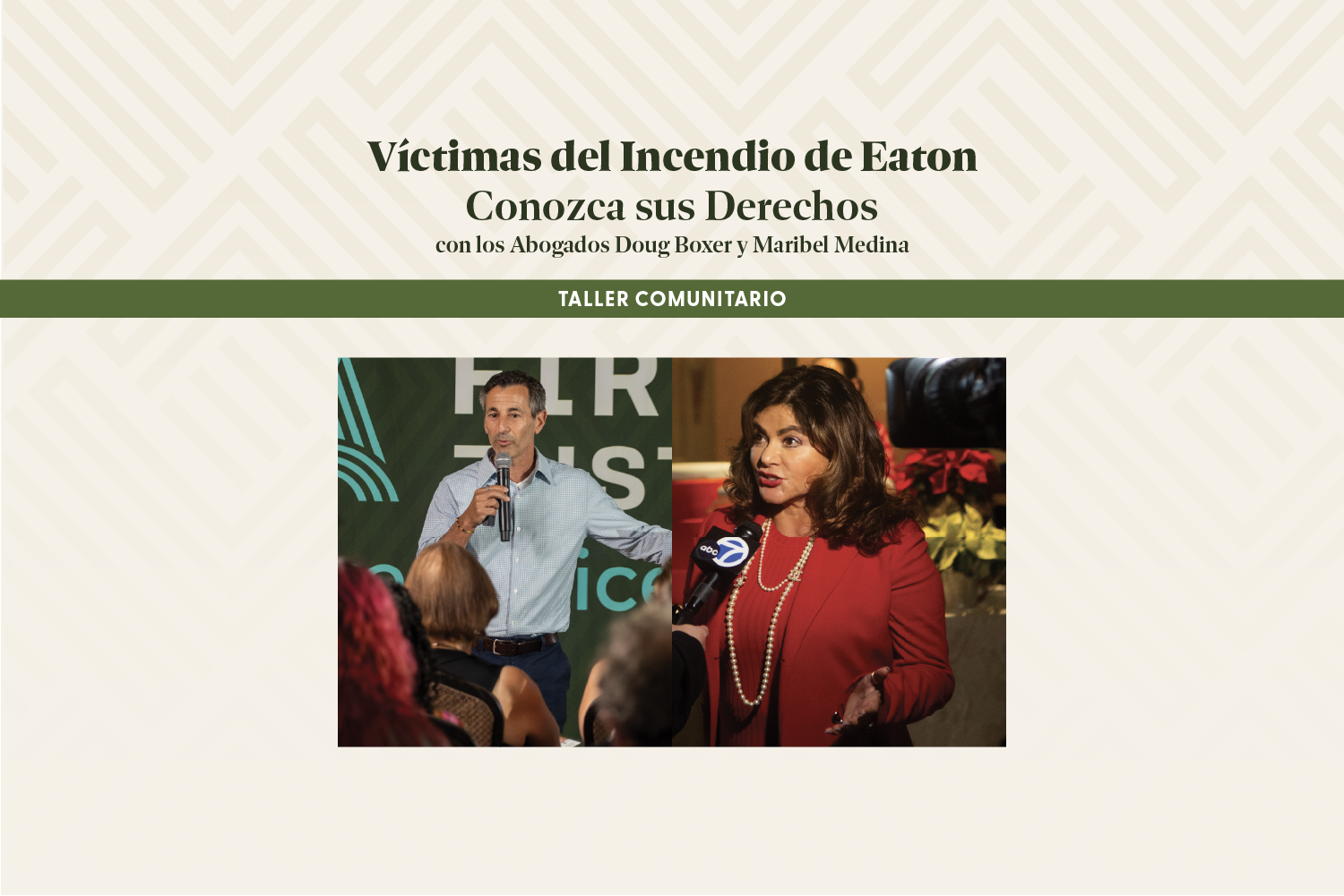 Únase a LAFJ y a los abogados Doug Boxer y Maribel Medinas en una reunión informativa gratuita para las víctimas del incendio de Eaton.